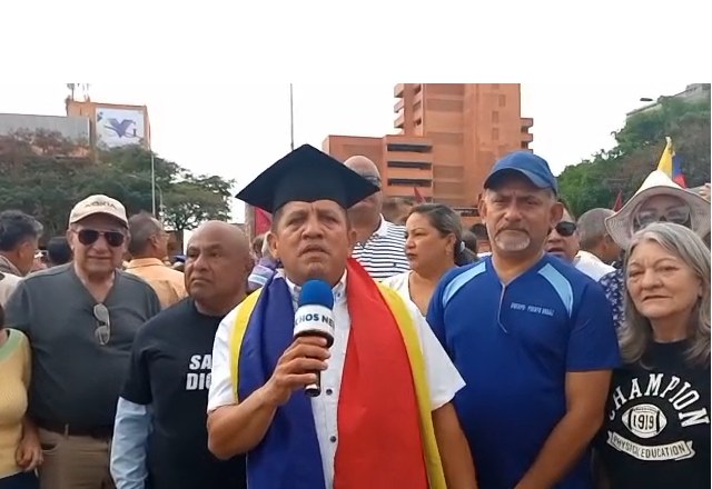 Enrique Gutiérrez Centeno, «pertenezco a la nómina de educación. Estamos aquí en una protesta por el sueldo digno, ya que el sueldo que nos paga el Gobierno no alcanza para nada, ni para la alimentación, ni para la medicina. Yo soy un paciente diabético y eso no me alcanza para nada. Necesitamos un reajuste salarial mínimo de 700 dólares. ¿Para qué? Para nuestra medicina y nuestra comida y para nuestra familia.